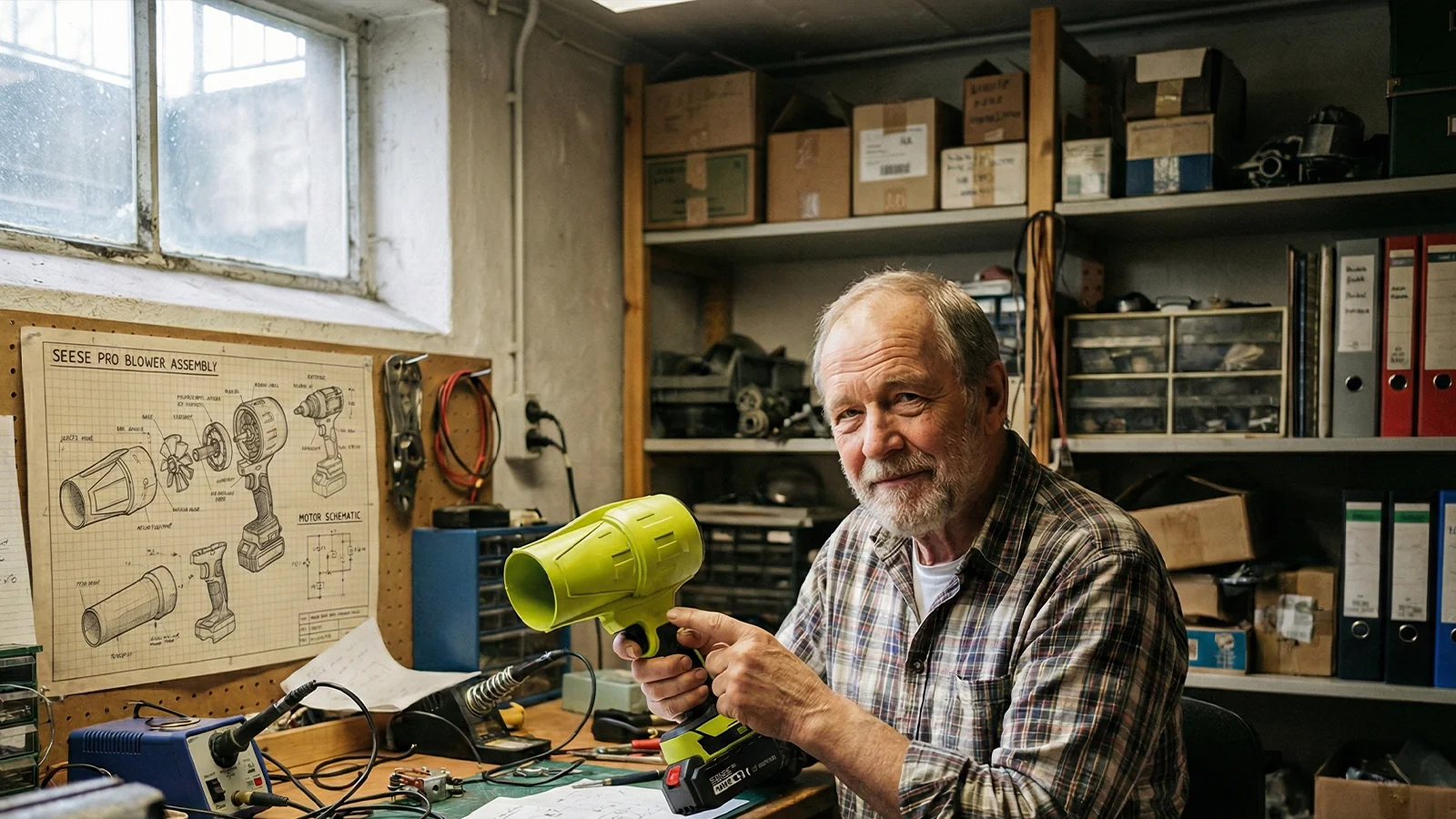 That’s when Albert had his genius idea: instead of making a huge machine on the ground, why not use drone and airplane turbine technology to create an ultra-powerful handheld tool? That’s how he developed a device that fits in one hand but deploys mind-blowing blowing power.