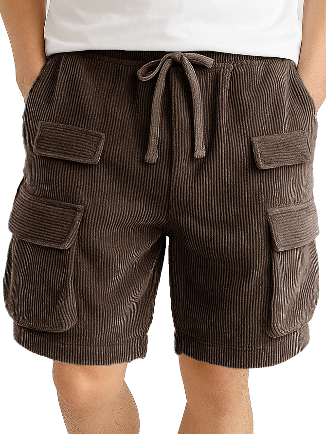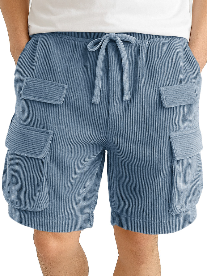 Men's Fashion Retro Outdoor Workwear Pocket Elastic Waist Drawstring Shorts