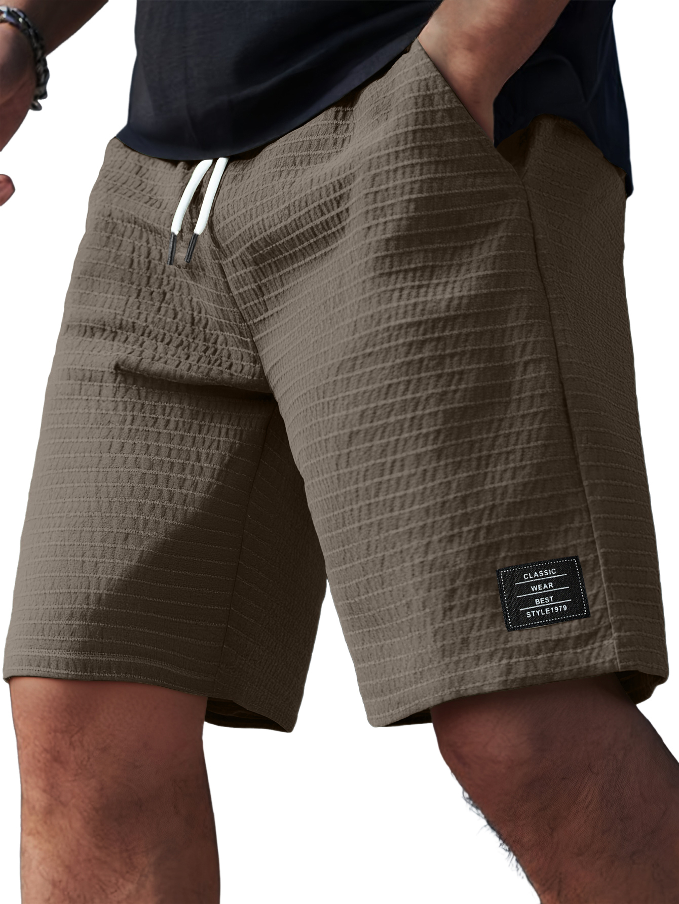Men's Comfortable Breathable Fashion Striped Jacquard Logo Shorts